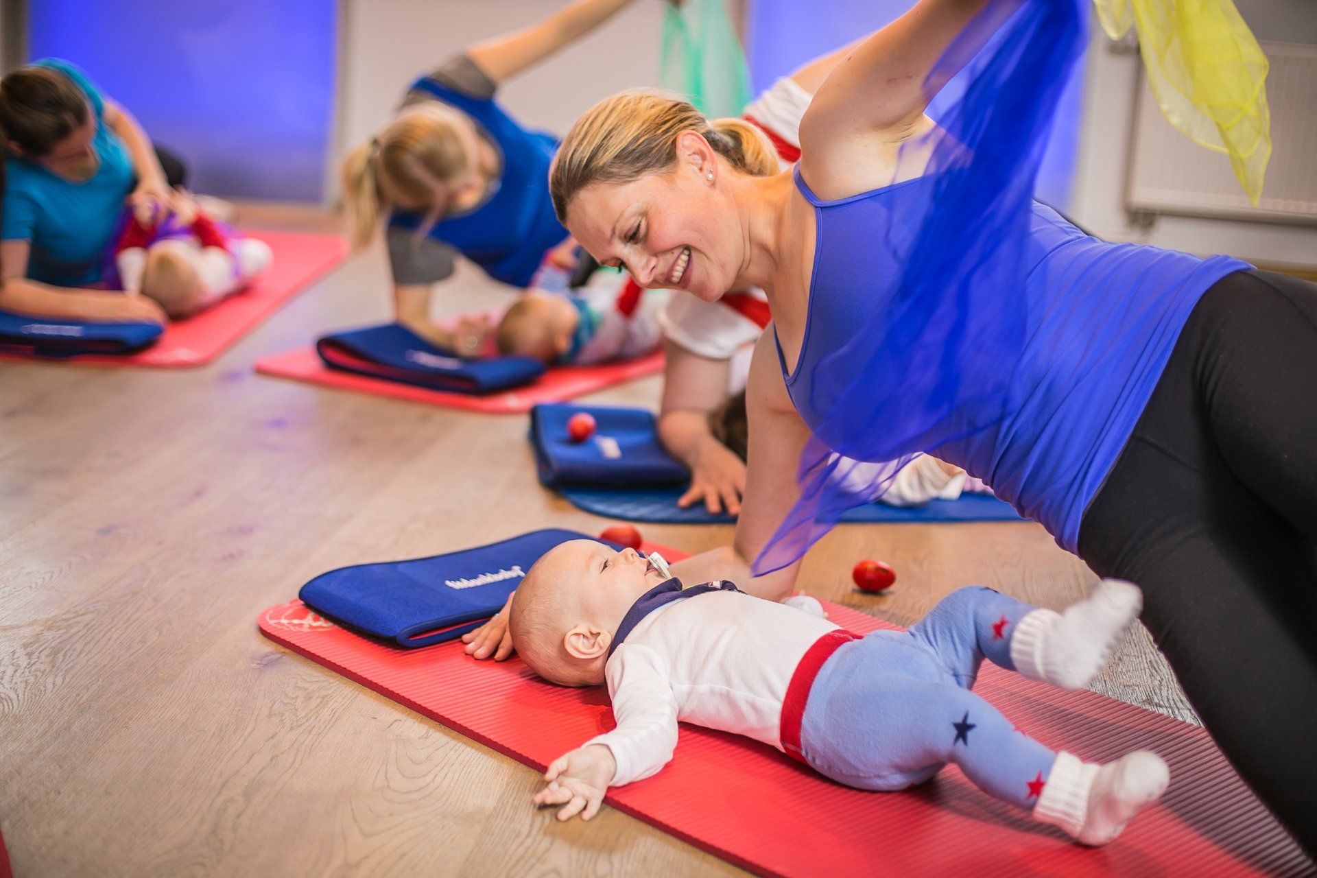 Die Babys haben großen Spaß daran, die Übungen zusammen mit der Mutter zu erleben.